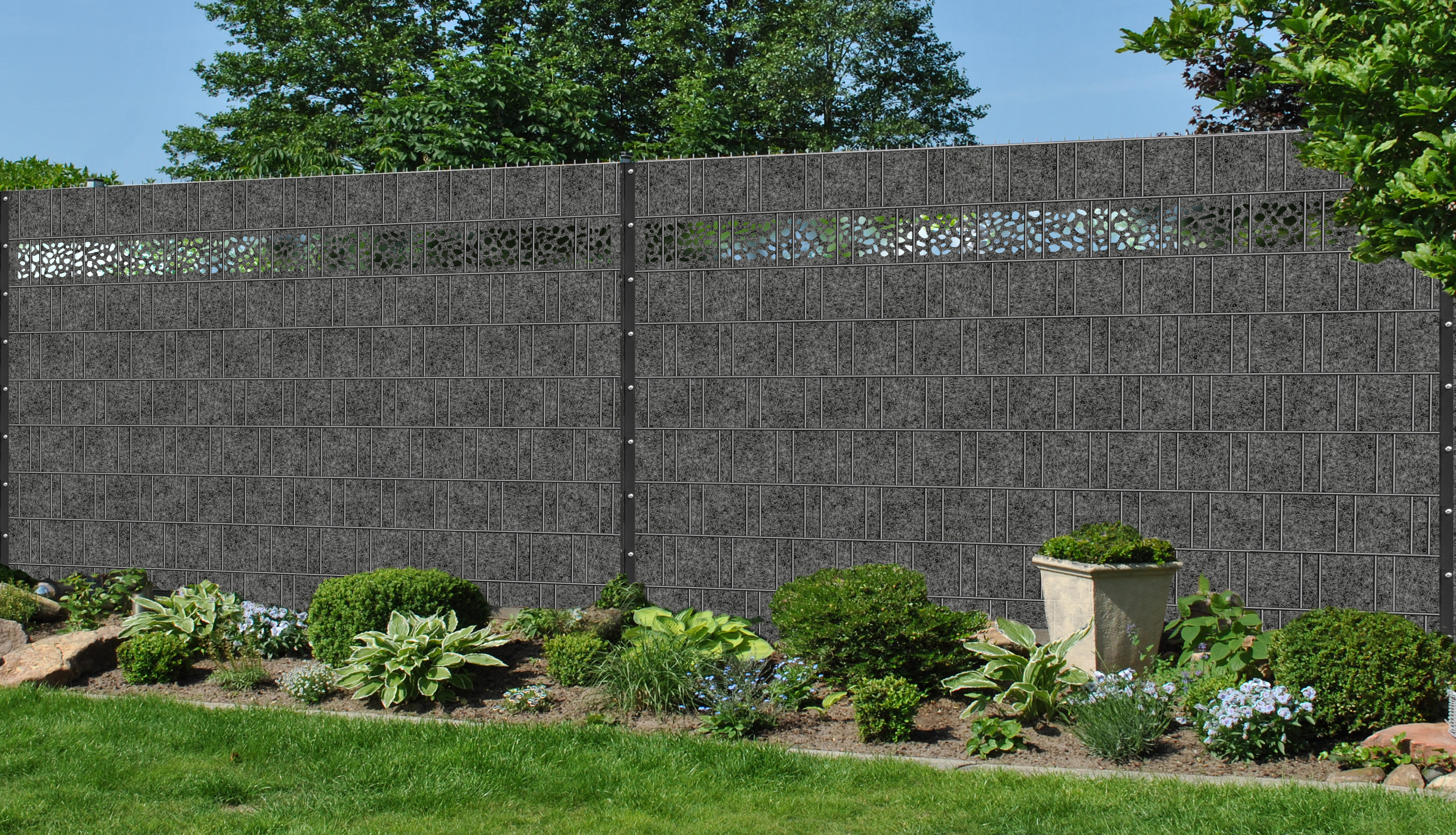 Einzelner Streifen mit fester Größe von 2,60 m Breite x ca. 19 cm Höhe. Mit diesen Streifen lassen sich im Zaun stilvolle Akzente setzen. Sie lockern den Zaun optisch auf. Sie Sind nicht gedacht um ganze Felder zu bestücken, da die Übergänge nicht bindend ein Bild ergeben. Dieser Artikel eigenes sich perfekt um ihn mit unserem einfarbigem Sichtschutz zu kombinieren. Gesamtlänge 2,6m gelaserte Bereich 2,3m mittig.